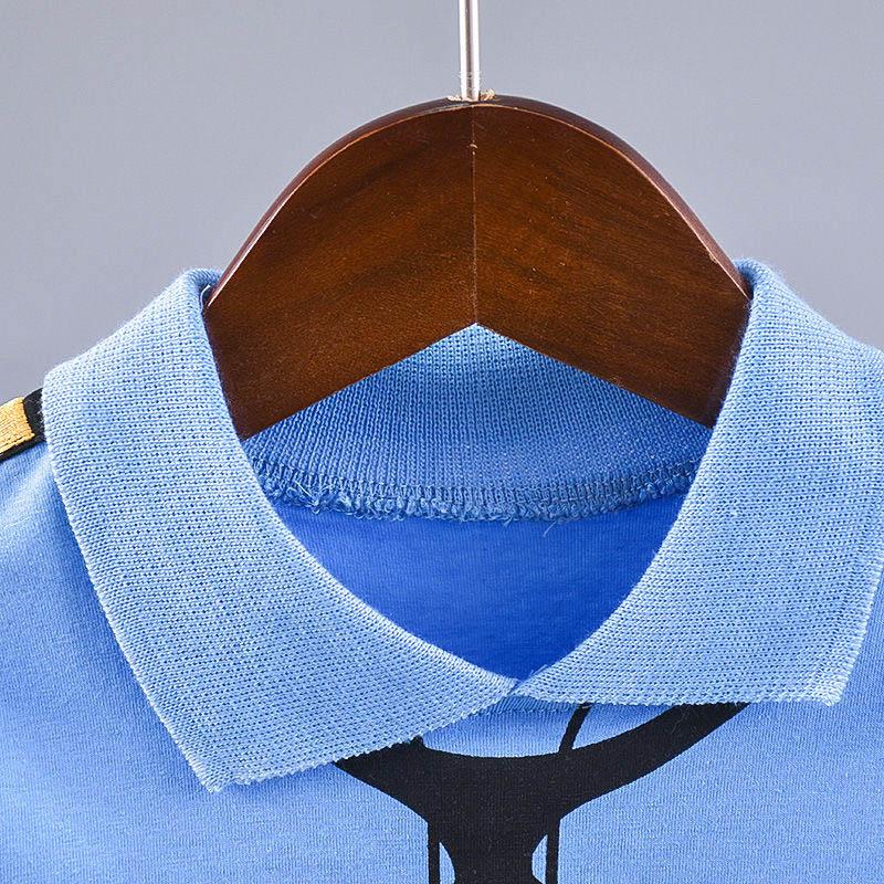 Children Clothing Summer Boy Suit Baby Short-sleeved Lapel Shorts Children's Captain Clothing Printing Epaulette Decoration Children's Two-piece Suit