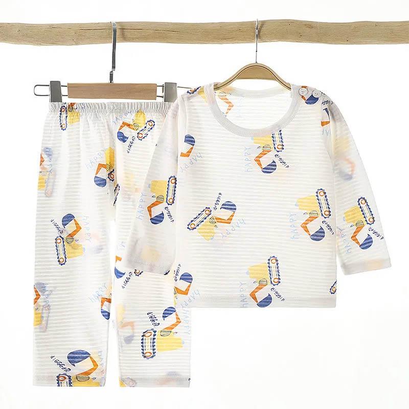 Children's home clothes set cute printing air-conditioning clothes long-sleeved boys and girls pajamas summer cool breathable leisure two-piece set