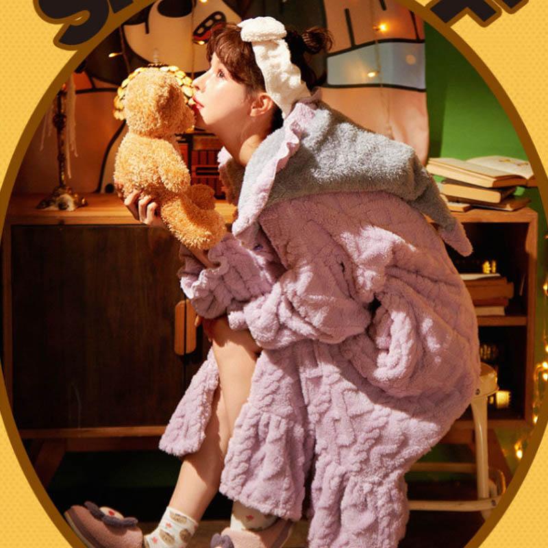 Christmas Pajamas Party Purple Nightgown Women Plus Velvet Thick Cute Loose Long Nightdress Super Thick Jacquard Flannel Can Be Worn Outside