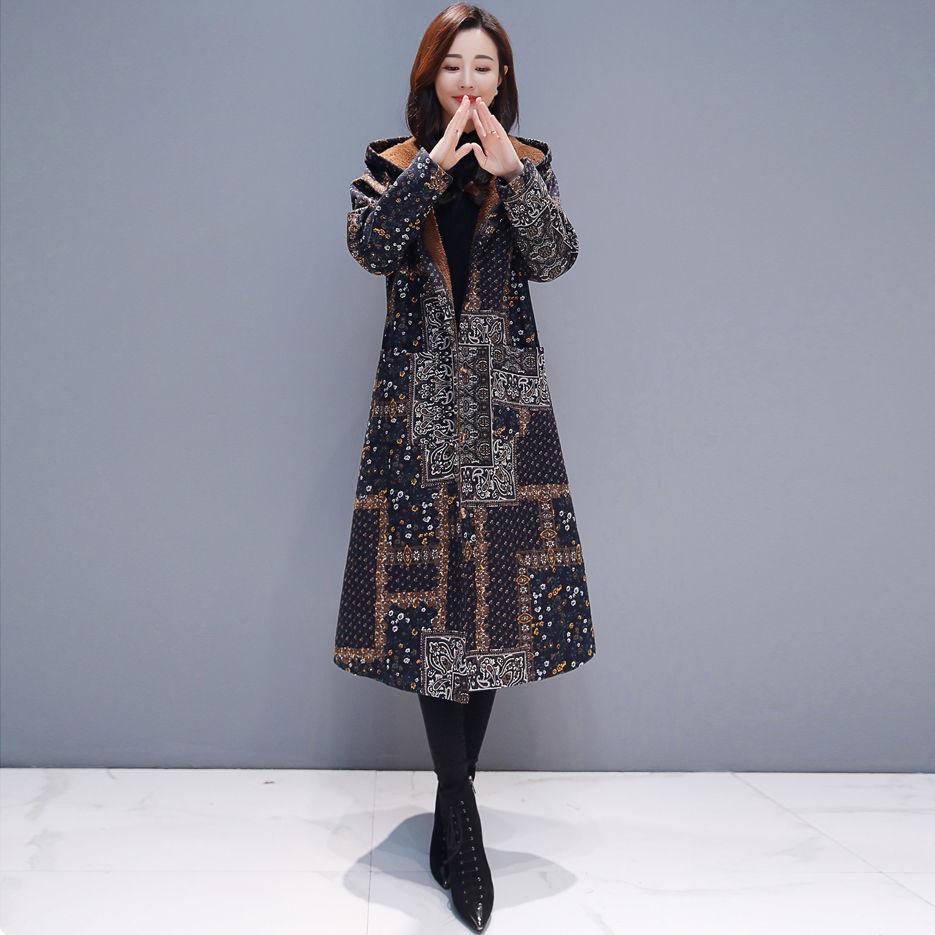 Coat Women Winter Warm Cotton and Linen Ethnic Button Pocket Long Coat Outwear