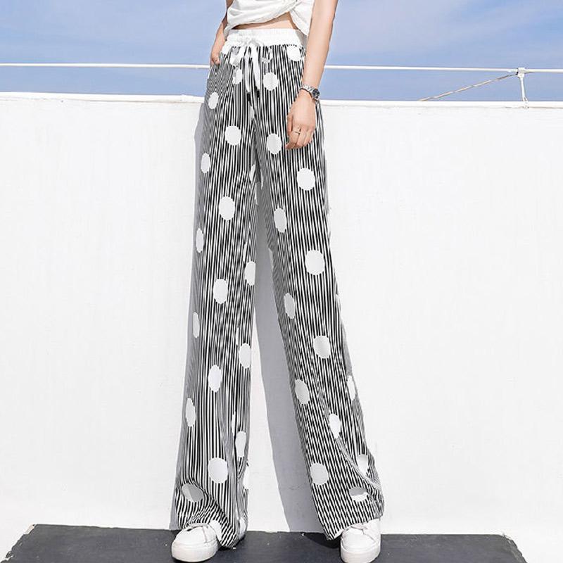 Color Striped Wide-leg Pants Ladies Summer High Waist Loose Thin Ice Silk Straight and Thin Casual Mopping Trousers