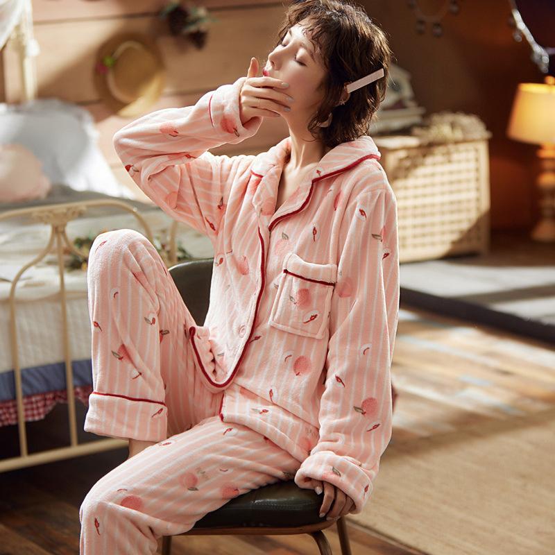 Coral Fleece Pajamas Women's Flannel Pyjamas Plus Size Velvet Thick Sleepwear Autumn Winter Warm Home Wear Suits Tops Pants Sets Long Sleeve Outwear