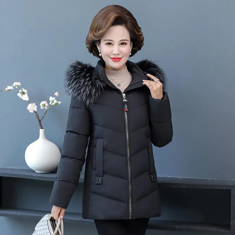 Cotton-padded Jacket Women Middle-aged and Elderly Women's Cotton-padded Jacket Female Mothers Winter Jackets Quilted Jacket Large Fur Collar Slim Fit