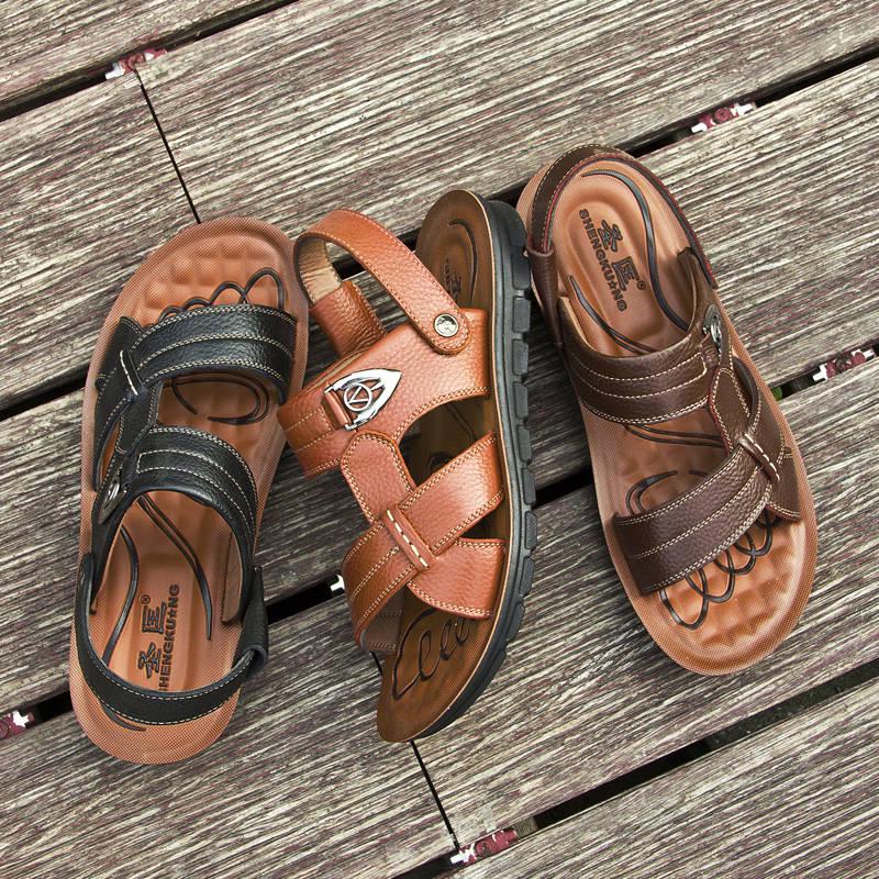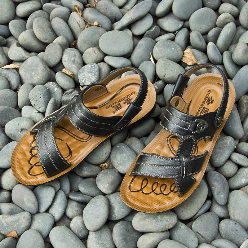 Cowhide Beach Shoes Men's Leather Men's Comfortable Non-slip Men's Slippers