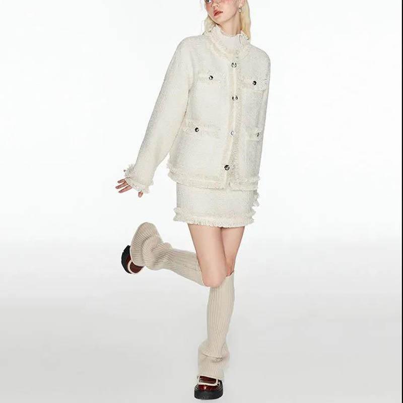 Daily JK Student Knee Pads Matching Crazy Plus Distribution Color Bunch of Stockings Over Knee Knit White Leggings Set
