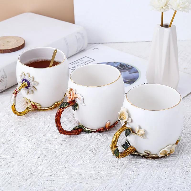 Daisy Ceramic Cup Home Drinking Cup Large Capacity Enamel Cup Creative Office Coffee Cup Couple Gift Cup