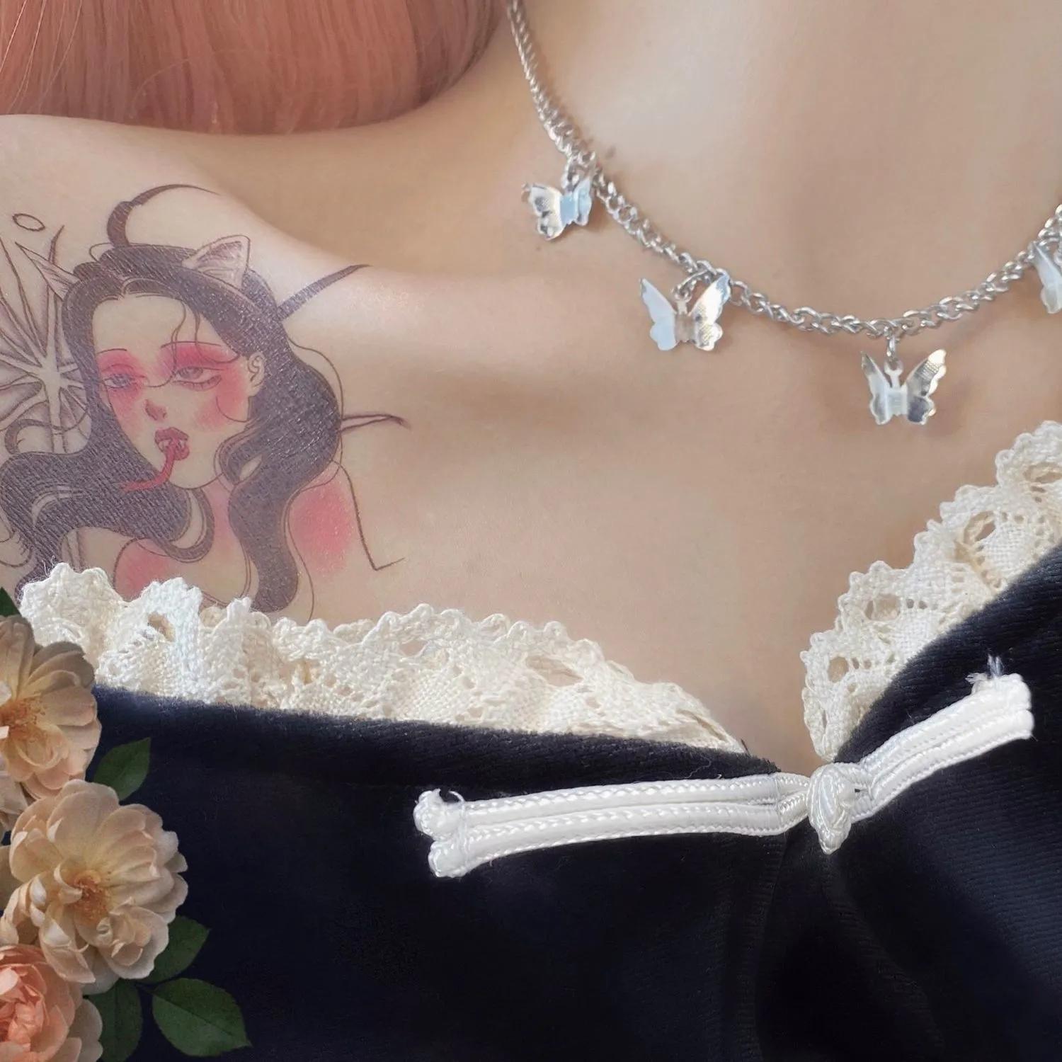 Dark Girl Butterfly Necklace Retro Collar Choker Necklace Non-fading Titanium Steel Necklace Mom Daughter Gifts Personalized Ornaments