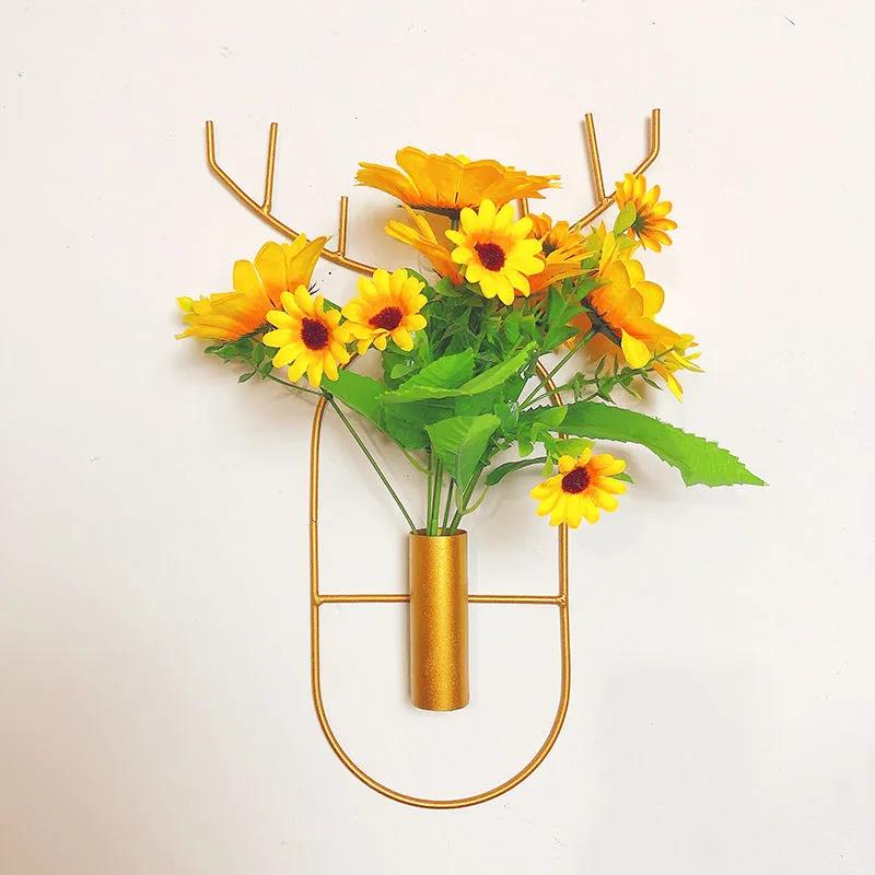 Deer Horn Iron Art Flower Arrangement Wall Mounted Metal Flower Stand Wall Decoration Pendant Flower Device