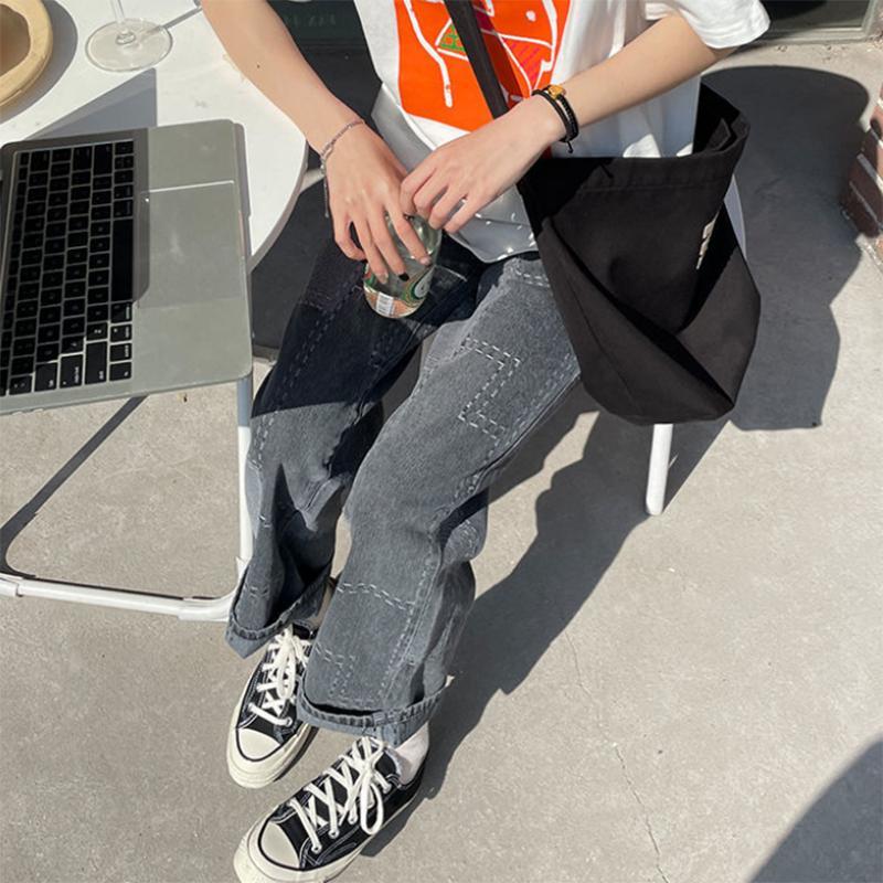 Design Sense Black Stitching High Waist Jeans Fat Large Size Spring and Autumn New Korean Version Loose Straight Long Pants Trendy