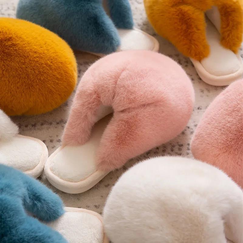 Designed Winter Warm Cotton Slippers Fluffy Non-slip Flat Shoes A Must-have At Home