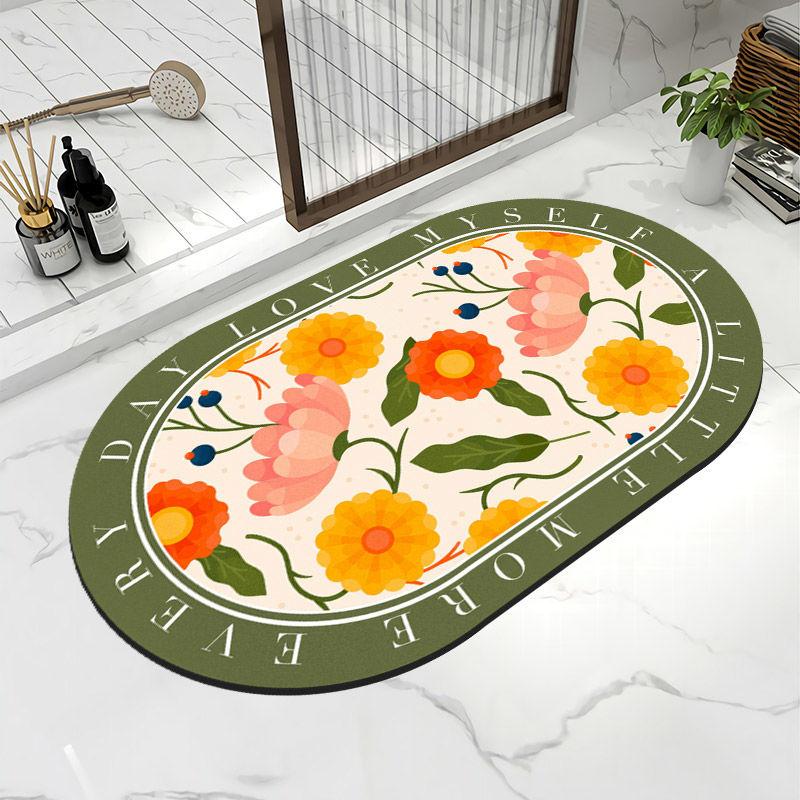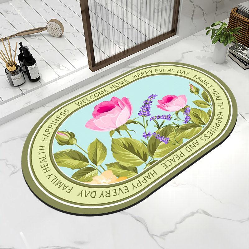 Diatom Mud Soft Pad Floral Pattern Light Luxury Wind Bathroom Floor Pad Anti-slip Absorbent Door 50 * 80/40 * 60cm