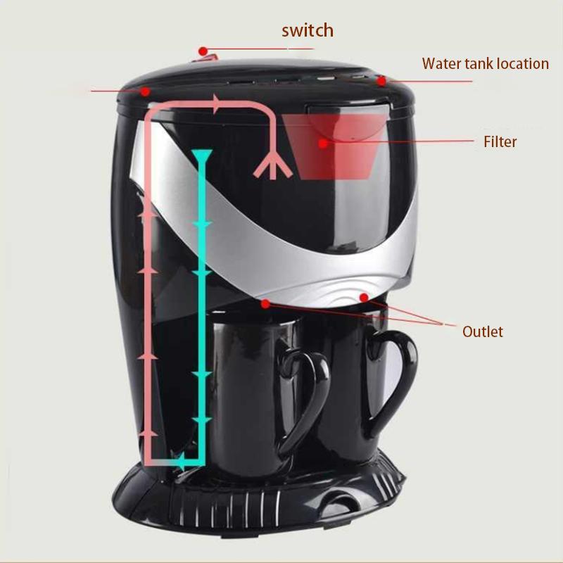 Electric Automatic Hourglass Coffee Machine Drip Coffee American Coffee Machine Domestic Drip Coffee Machine Double Cup Filter Brewing