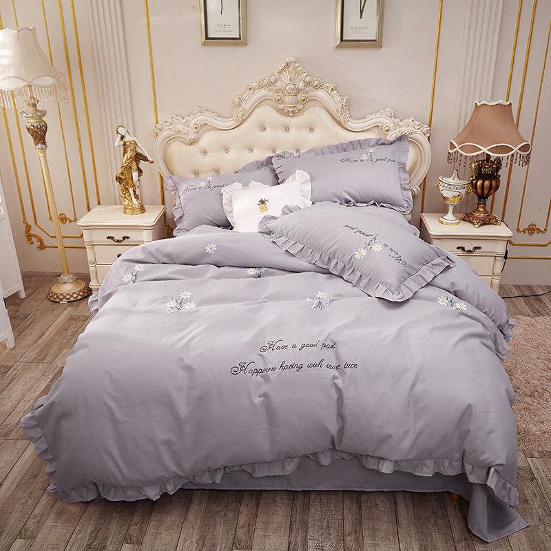 Embroidered Thick Brushed Princess Style Four-piece Lace Duvet Cover Double Bed Single Bedspread Bedding