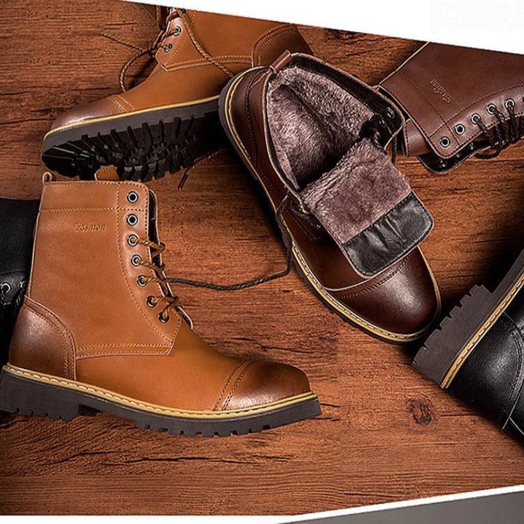Fashion Men's High-top Martin Boots Plus Velvet Warm Shoes Retro Trend Boots