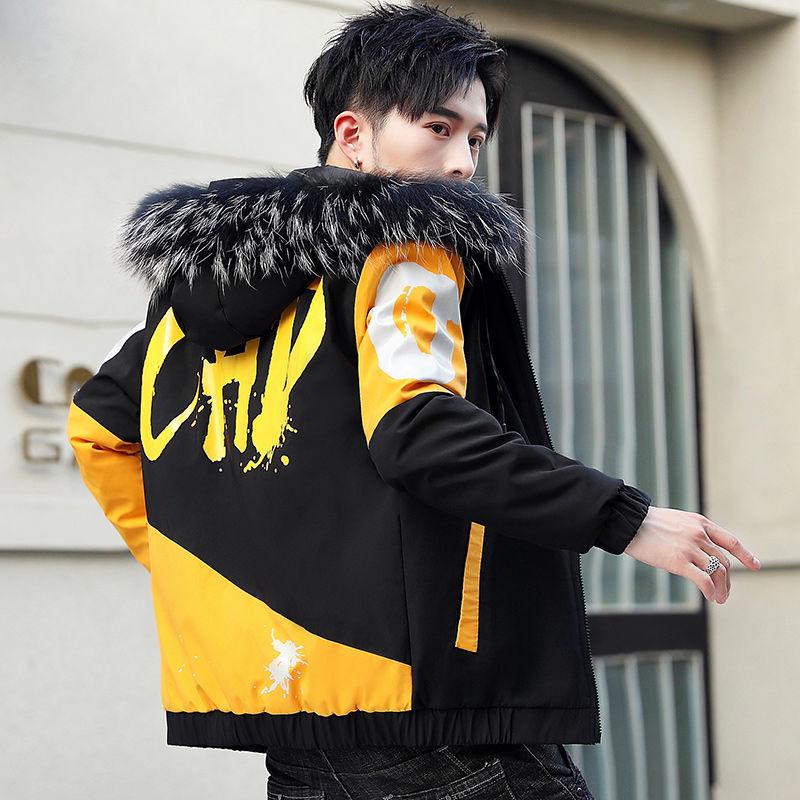 Fashion Men's Parker Jacket Winter Fashion Men's Cotton Jacket Thicken Stitching Trendy Brand Hooded Cotton Jacket Loose Men's Cotton Jacket