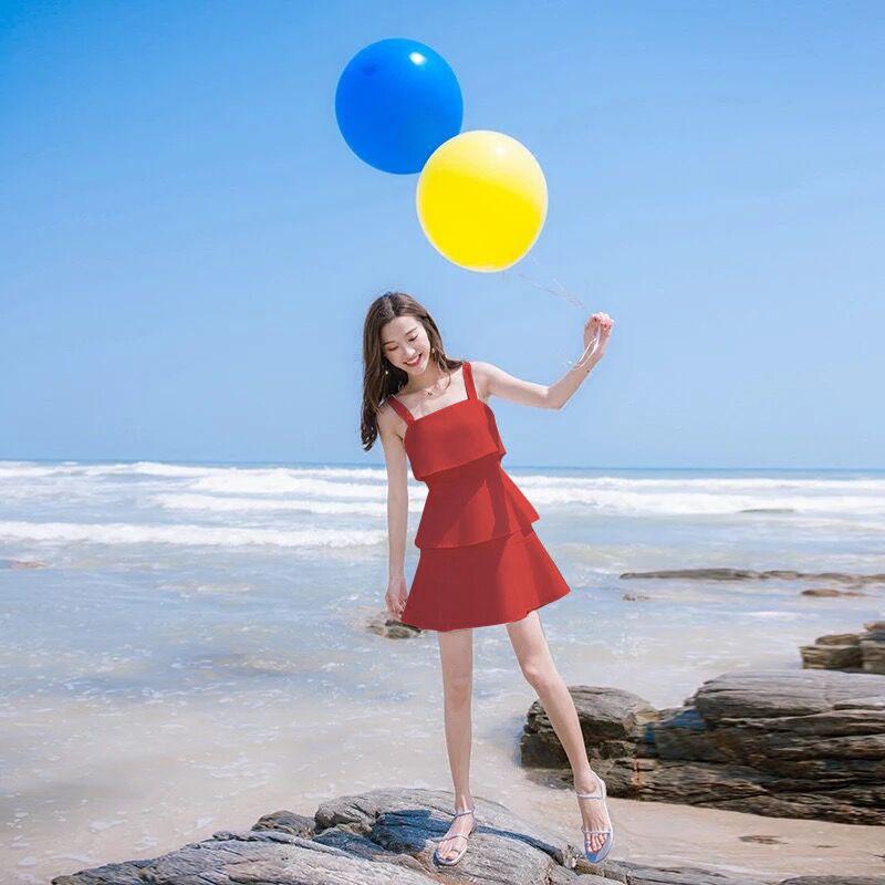 Female Simple and Slim Little Fresh Beach Sling Vest Cake Dress Strapless Foliage Short Graceful Dress