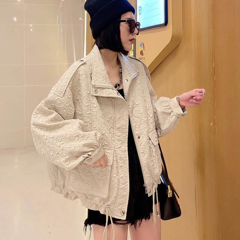 Folded Embossed Short Jacket Women Autumn Loose Casual Fashion Western Style Blouse