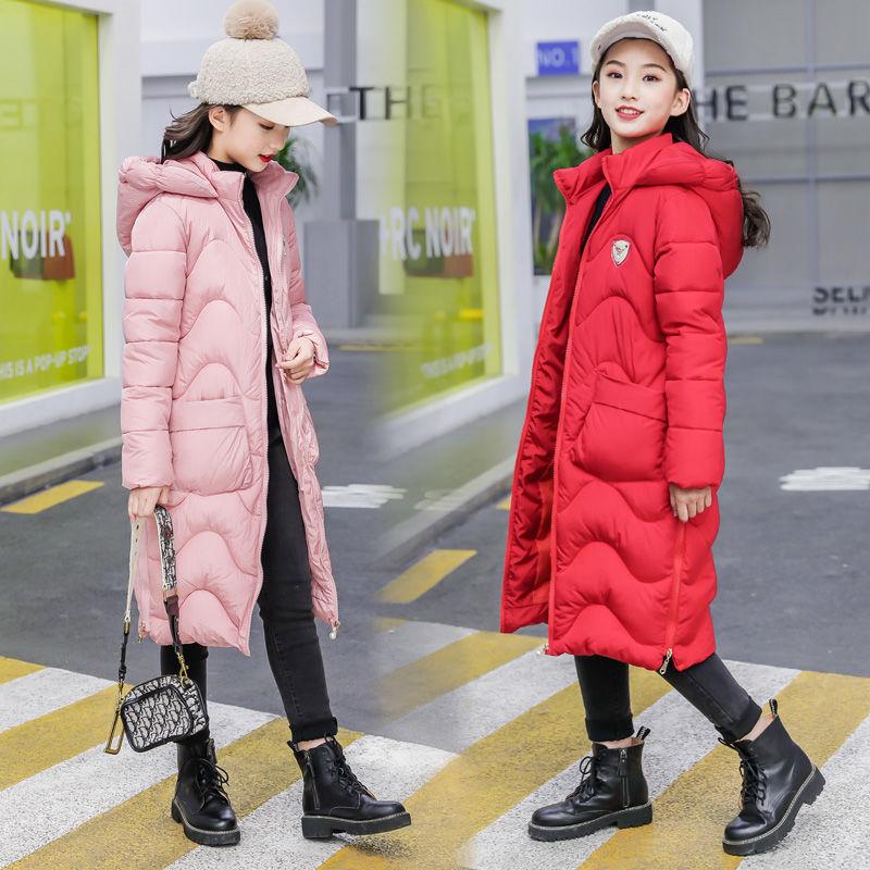 Girls Down Jacket Thickening Velvet Fashion Pike Clothing Long Hooded Kids Winter Parkas