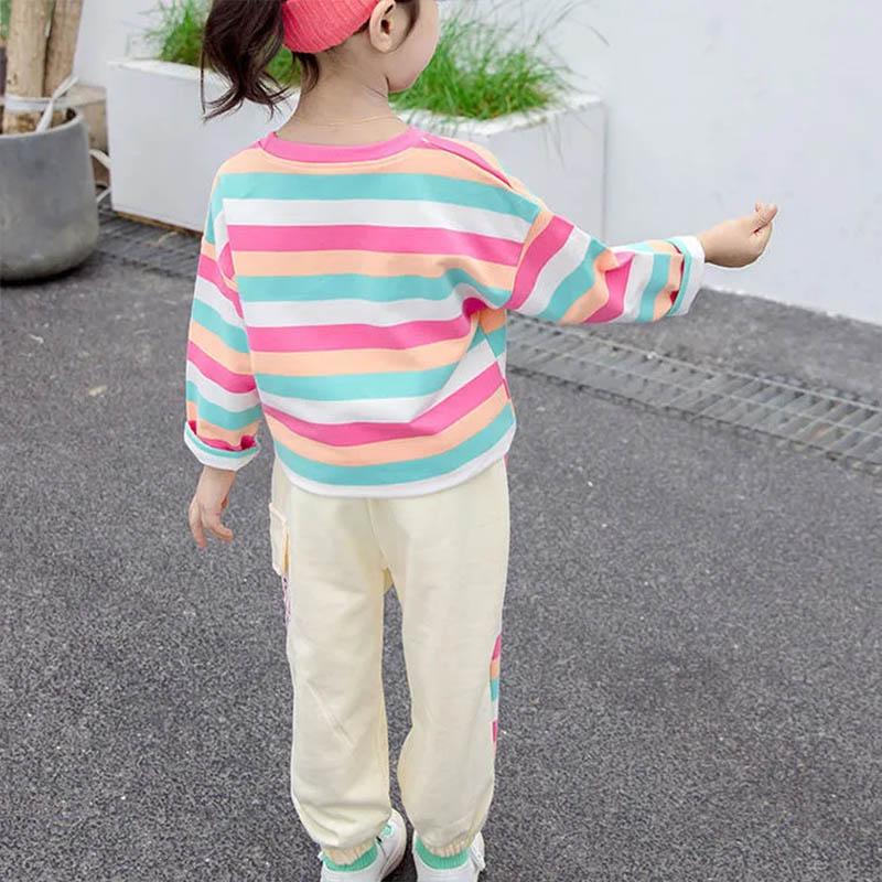 Girls Spring and Autumn Clothes Comfortable Loose Long Sleeves + Casual Pants Suits Girls Baby Color Stripes Cute Two-piece Set