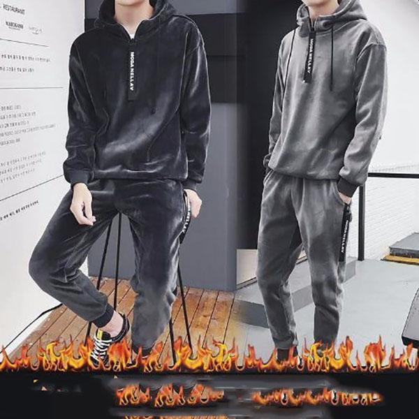 Gold Velvet Men's Sweater Suit Winter Fashion Hooded Plus Velvet Thick Korean Casual Sports Jacket