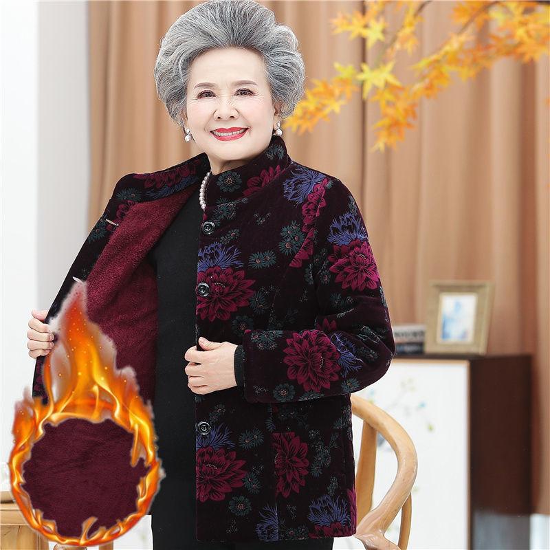 Grandma Clothes Middle-aged and Elderly Winter Clothes Women Plus Velvet Thick Padded Jacket Elderly Clothes Mother Autumn and Winter Coat
