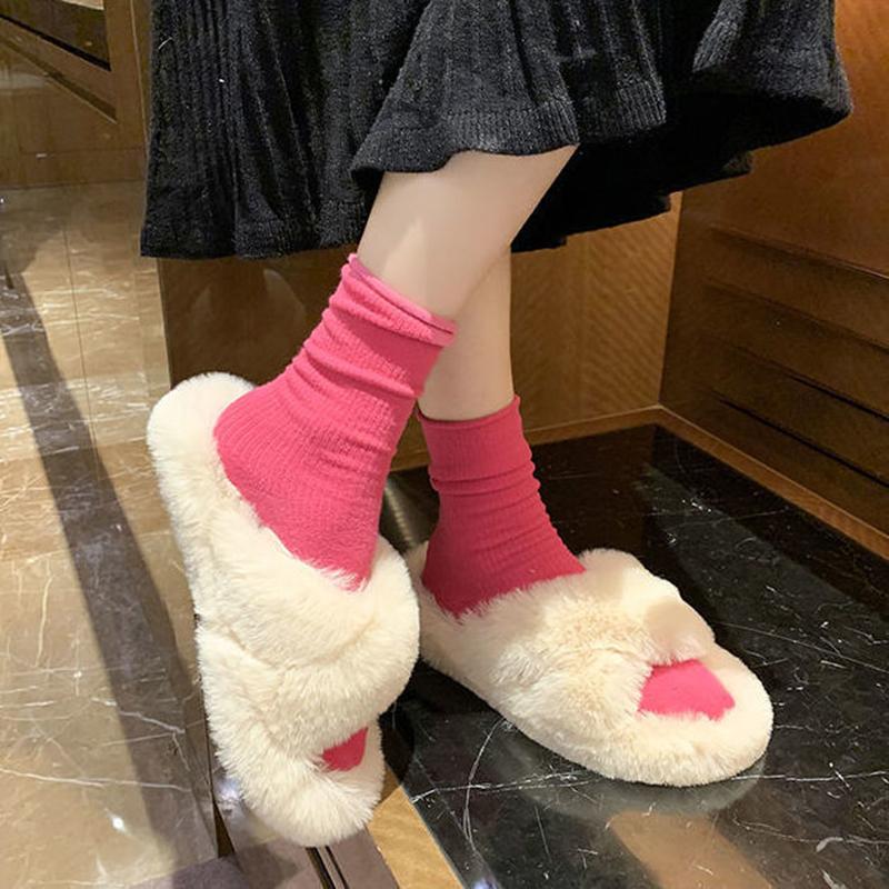 Hairy Slippers Women's Flat-bottom Non-slip Slip-on Slippers Outer Wear Thick-soled Cotton Slippers Home Warm Cotton Slippers