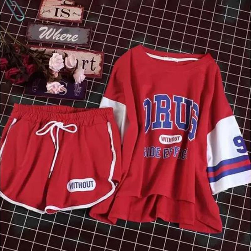 Half-sleeved Top + Shorts Two-piece Sports and Leisure Suit Women's Loose T-shirt Cute Home Casual Wear Fabric Soft Light and Breathable