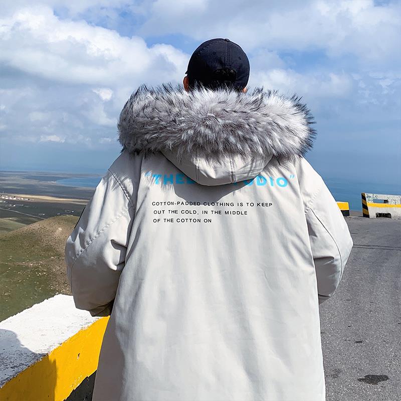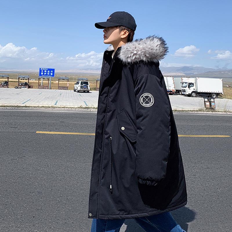 Handsome and Trendy Mid-length Men's Parker Clothing Winter Japanese Loose Thick Large Fur Collar Coat Tide Brand Large Size Wild Cotton Coat