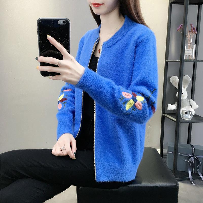 Imitation Mink Fleece Knitted Cardigan Spring and Autumn Loose Short Coat Fashion Thick Top