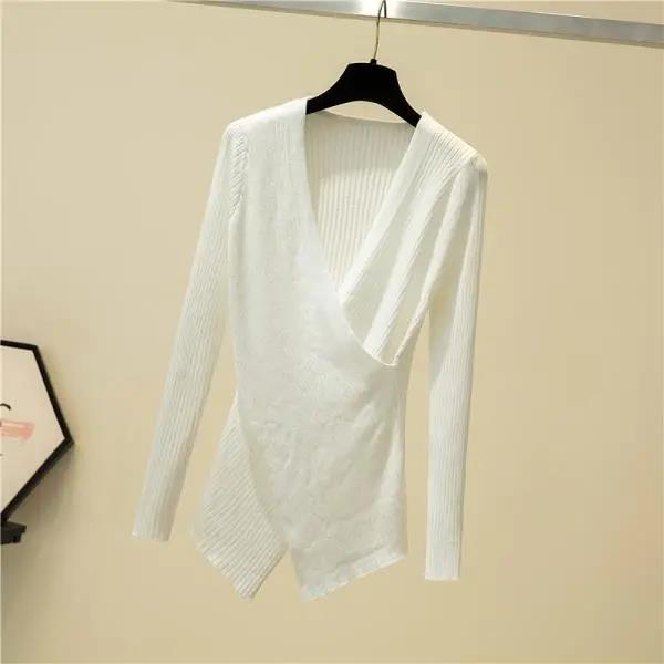 Irregular V-Neck Long Sleeve Pullover Knitted Sweater Women Winter Sweaters Chic Knitwear Korean Style Woman Clothes Fall