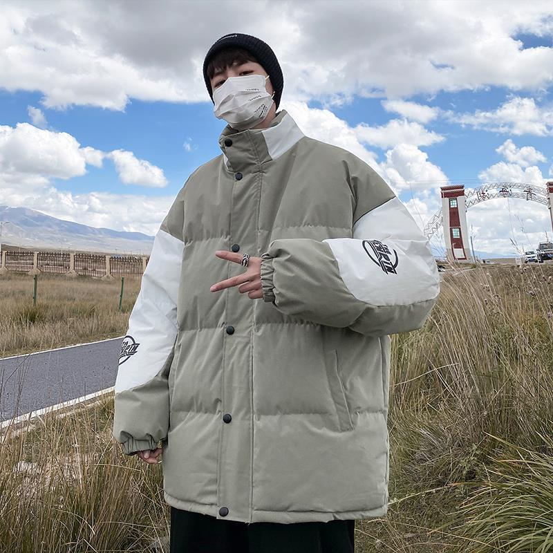 Japanese Color Matching Stand-up Collar Cotton Jacket Men's Large Size Loose Casual Bread Clothes Korean Version of The Trend of Winter Thick Coat