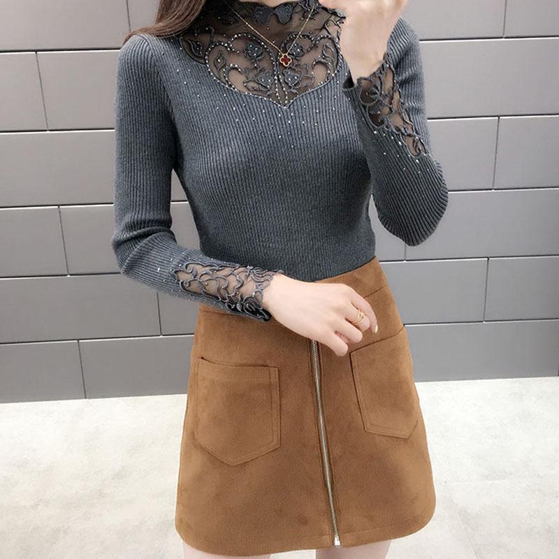 Knit Sweater Slim-fit Sweater Women Autumn and Winter Fashion Outer Wear Lace Collar Bottoming Shirt Young Women Long-sleeved Top