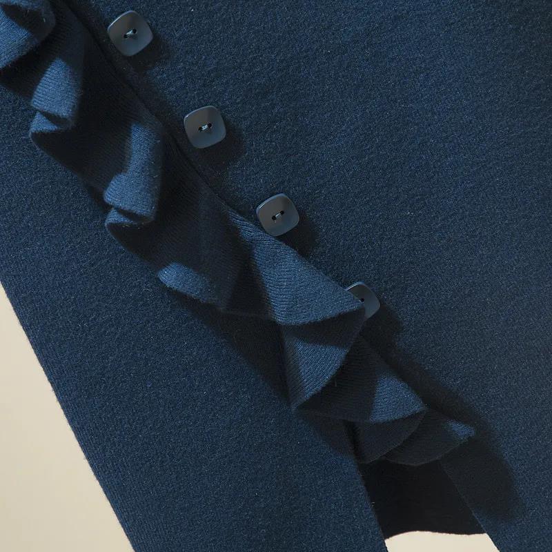 Knitted Skirt Women's Autumn Winter Skirt Winter with Sweater Wooden Ears Hip Single-breasted Skirt