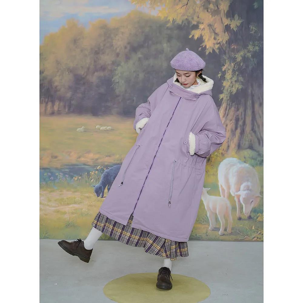Korean Version of The Loose Padded Jacket for Female Students with Lamb Wool Padded Over-the-knee Padded Jacket