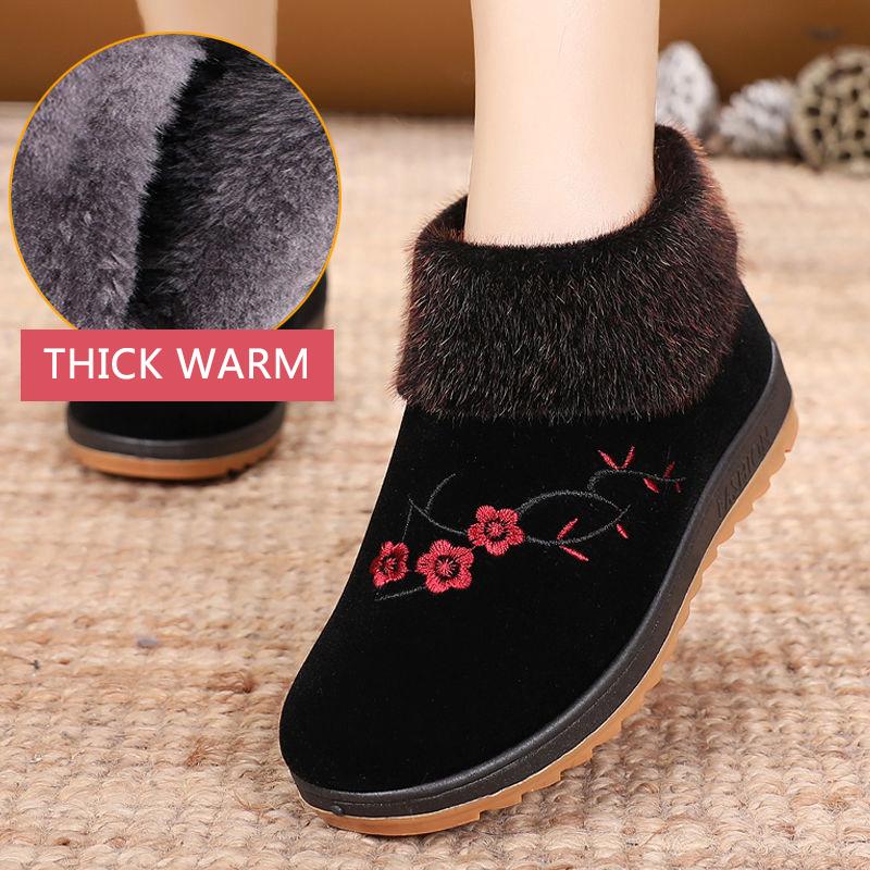 Ladies Cloth Shoes Winter Old Cotton Shoes Women Plus Velvet Warmth Soft-soled Non-slip Cotton Boots for The Elderly