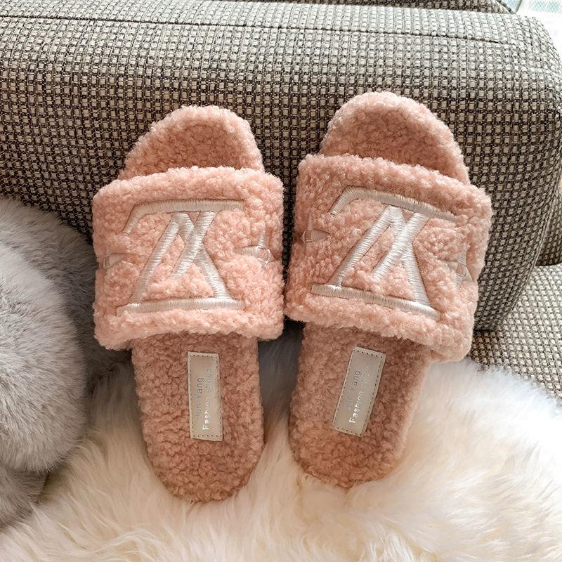 Ladies Cotton Slippers Plush Slippers Fall Winter Fashion Outer Wear All-match Flat Flat Shoes