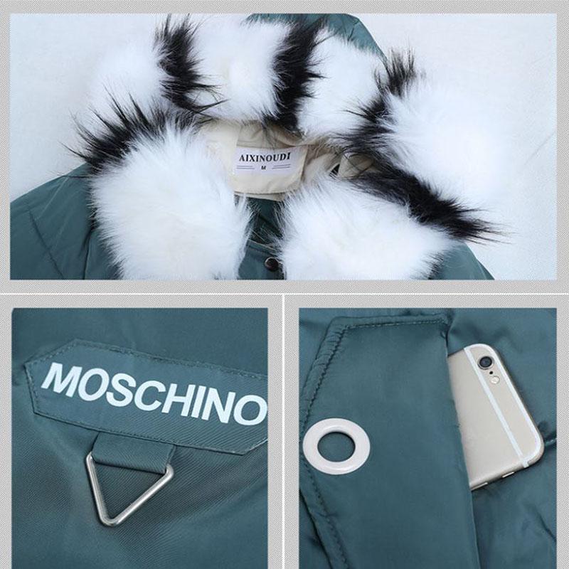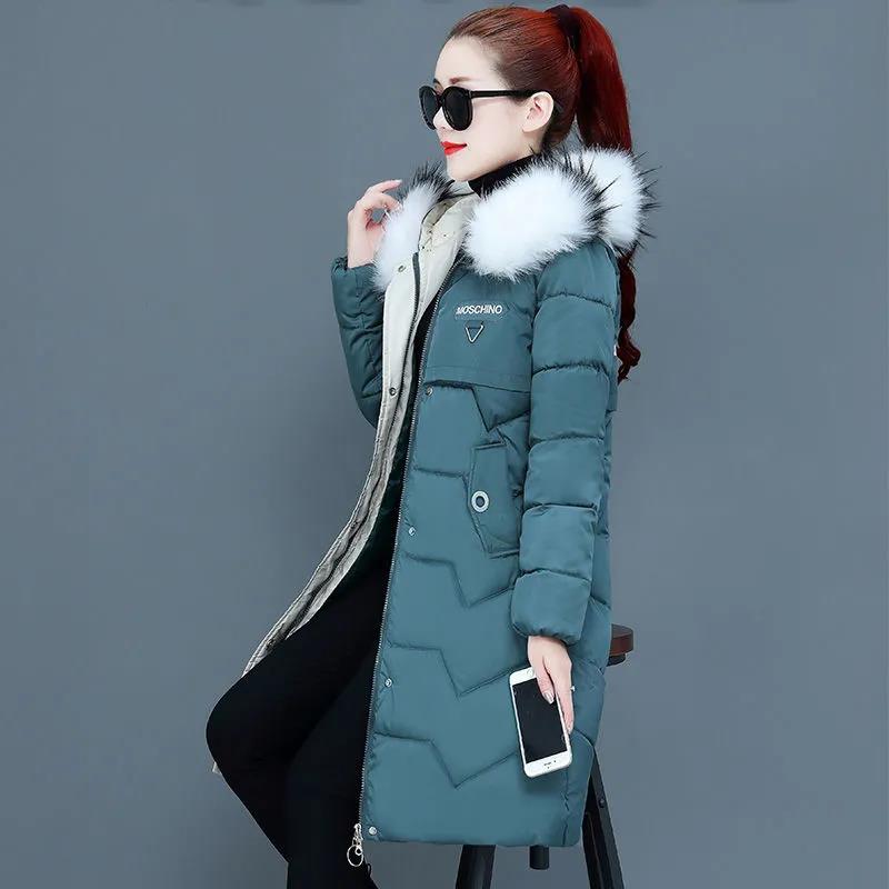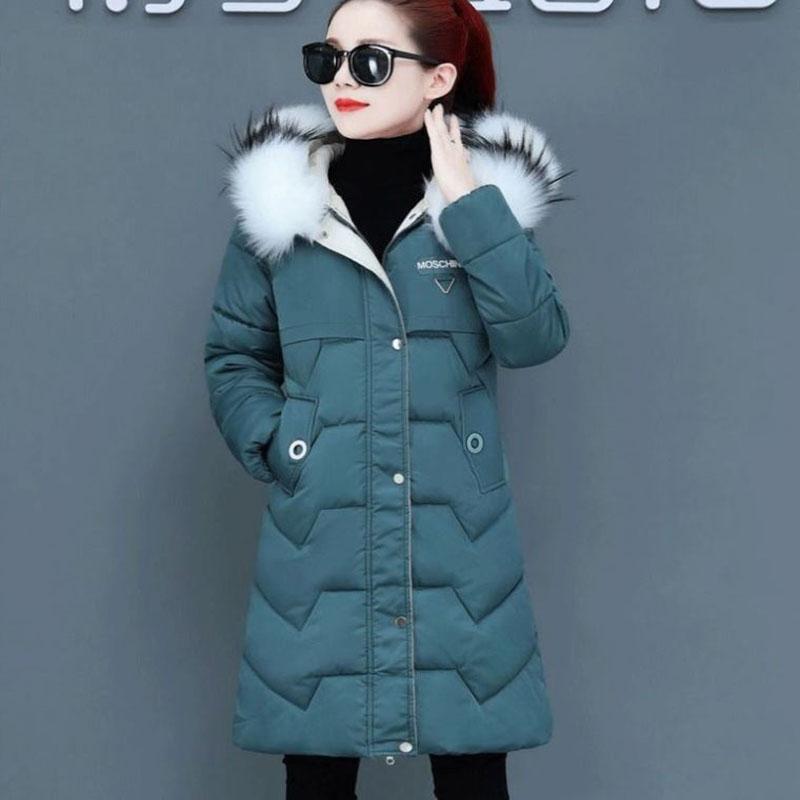 Ladies Down Jacket Winter Fashion Big Fur Collar Hooded Jacket Thick and Cotton Warm Mid-length Jacket