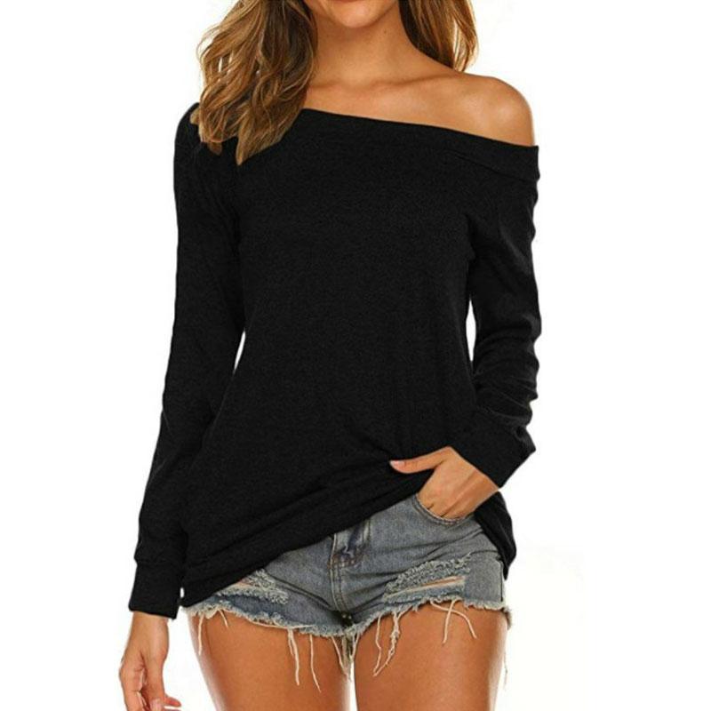 Ladies Long Sleeve T-Shirt Spring and Summer Off Shoulder Top Thin Loose Solid Color Shirt Woman Tshirts Fashion Tee Sexy Tops One Shoulder Sexy Tops