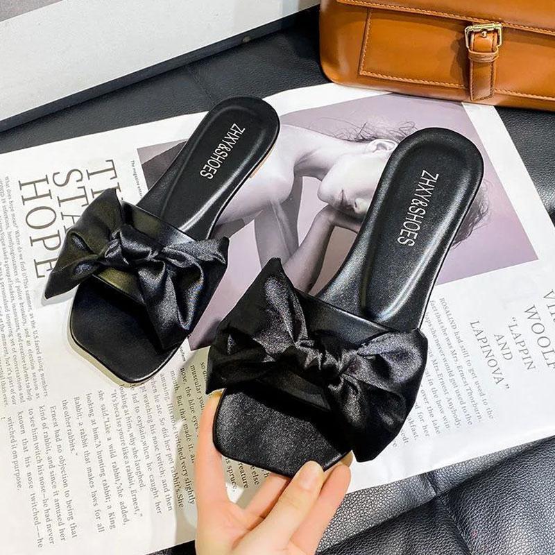 Ladies Summer Bow Sandals and Slippers Fashionable All-match Flip Flops Beach Sandals