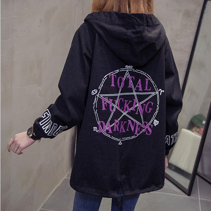 Large Size Hooded Denim Jacket Women's Loose and Thin Casual Long-sleeved Warm Starry Jacket Women's Loose Denim Jacket