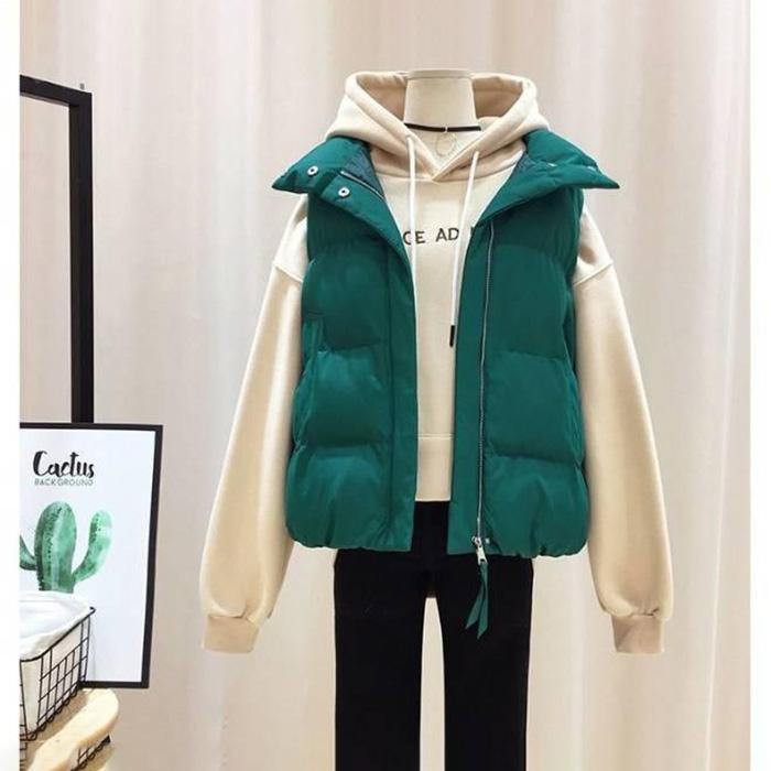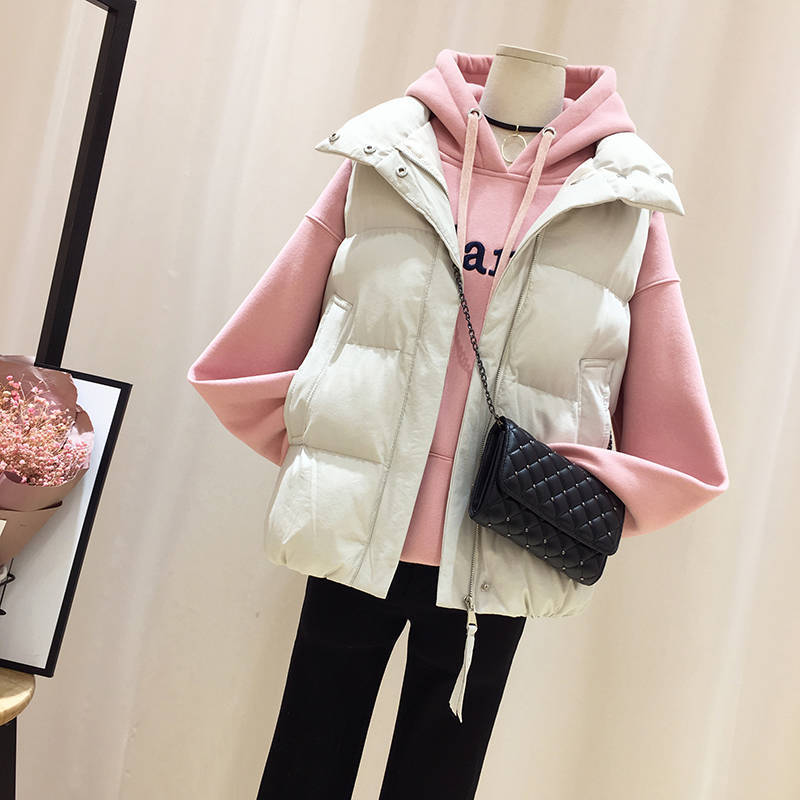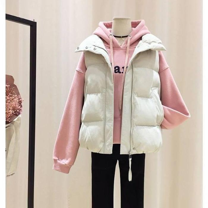 Large Size Stand-up Collar Down Padded Jacket Women's Short Autumn and Winter All-match Loose Waistcoat Waistcoat Warmth Padded Padded Jacket
