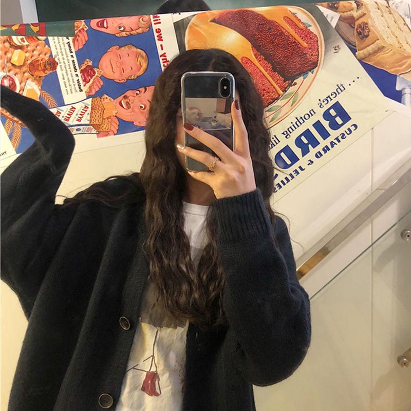 Lazy Style Sweater Jacket Female Net Red Korean Version of The V-neck Student Shirt Loose Knit Cardigan Solid Color