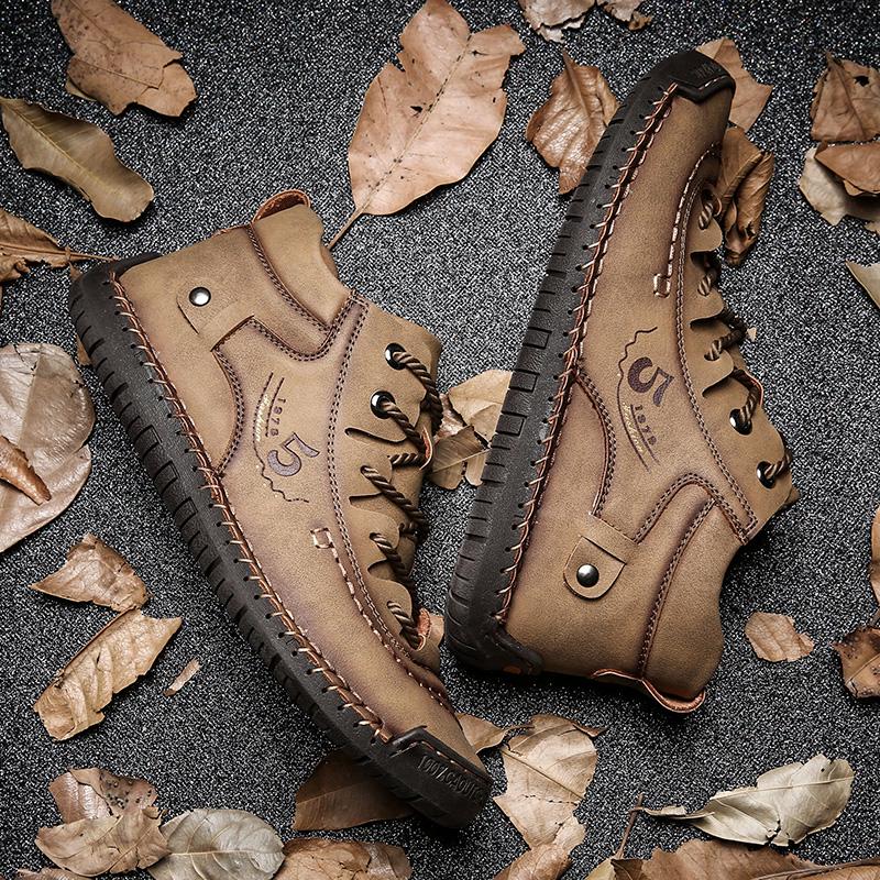 Men Shoes Casual Pu Leather Shoes Men Breathable Lace Up Flat Slip On Comfy Warm Footwear Big Size38-47