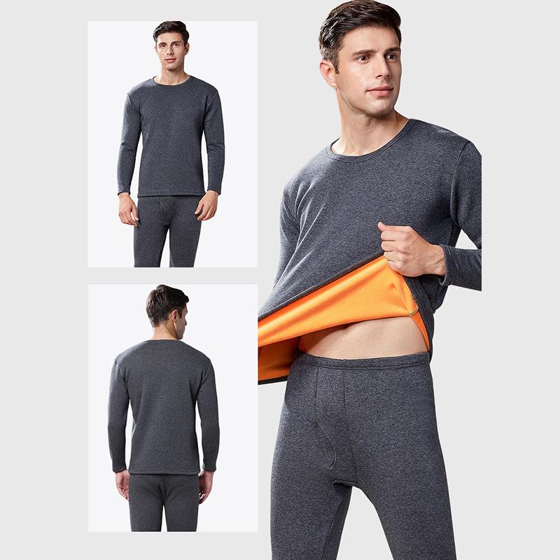 Men Winter Autumn Plus Velvet Thicken Thermal Underwear Tight Suit High Elasticity Soft Lining O-neck Pajamas Spring Long Sleeve Clothes Breathable