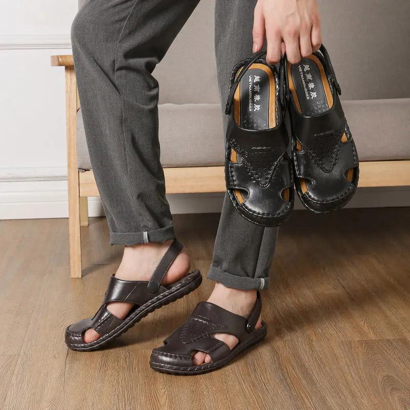 Men's Breathable Sandals Summer Korean Version Hole Slippers Dual-use Beach Shoes Work Sports Casual Sandals Dad Flip Flops