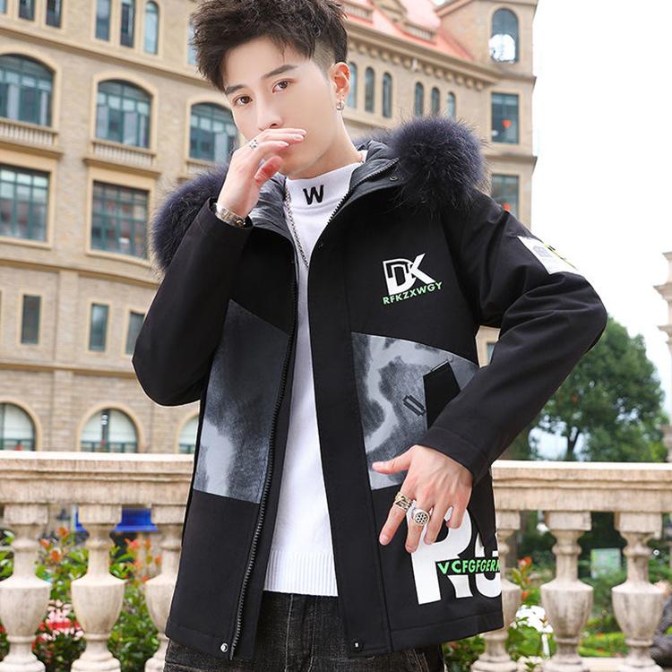 Men's Hooded Cotton-padded Jacket Youth Thickening Warmth Tide Brand Down Cotton Jacket Short Fur Collar Parka