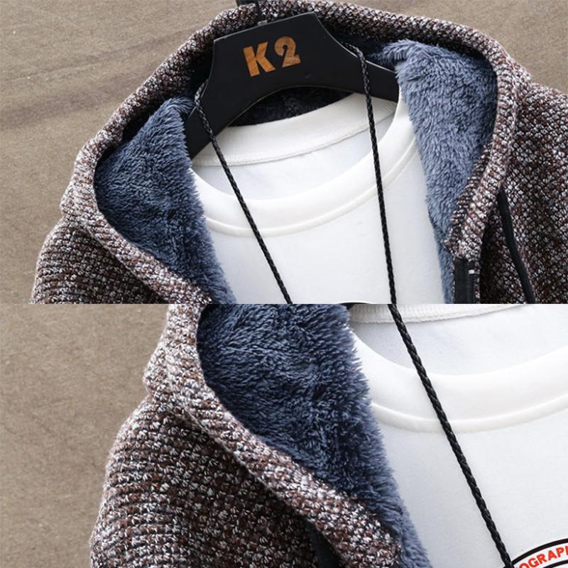 Men's Windbreaker Winter Jacket Wool Parka Coat Long-sleeved Hooded Cardigan Loose Knitted Warm Jacket