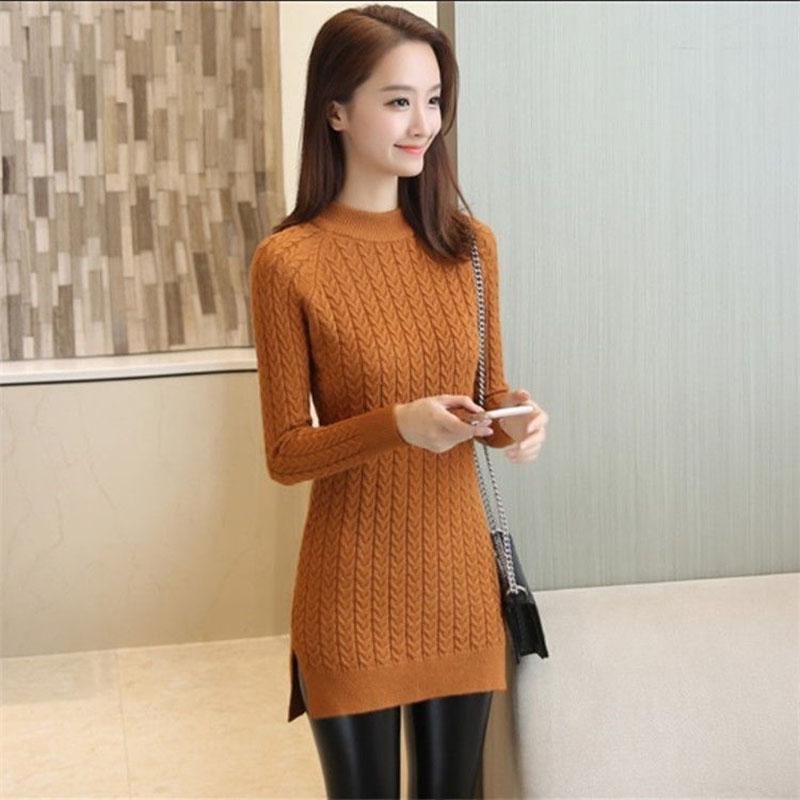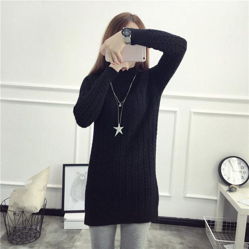 Mid-length Knitted Slim-fit Sweater, Solid Color Padded Bottoming Shirt, Round Neck Dress In Autumn and Winter