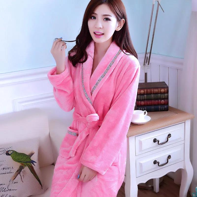 Noble Beige Ladies Pajamas Cashmere Warm Home Clothes Striped Homewear Quick-drying Bathrobe Robe Coat Long