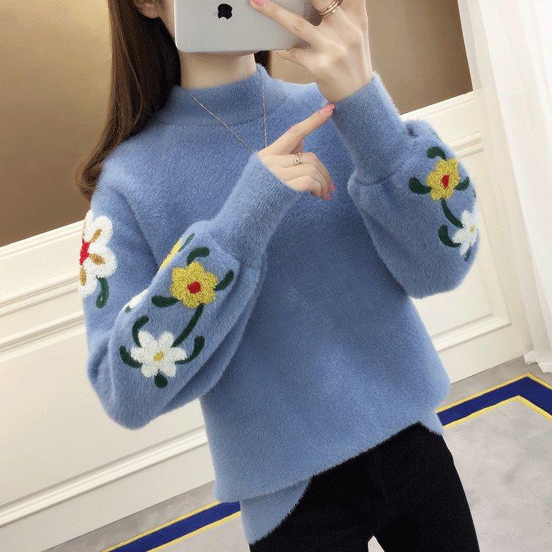 Non-shedding Long-sleeved Fashion Top Plus Size Sweet Embroidered Sweater Women